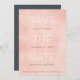 Modern och enkel spara datumkortet med funktioner som sans serif och italic lettering i skarp vit text, med namn, datum och plats för bröllop som är sammanflätade med "spara datumet". En vattenfärg som tvättar bakgrund i blekens peachy rosa tillför mjuk romantisk charm. Anpassa med din inbjudningsinformation och/eller bröllop webbplats längs grund.