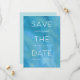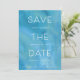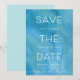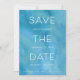 Modern men ändå vid kusten sparar du datumdesignen med funktioner som sans serif och italic lettering i skarp vit text, med namn, datum och plats för bröllop som är sammanflätade med "spara datumet". En vattenfärg tvättar bakgrund i rikens havstoner av turkos, teal och blue lägger till elegantens strandkarm. Anpassa med din inbjudningsinformation och/eller bröllop webbplats längs grund. En chic sparar datumdesignen för sommar-, destinations- eller strandbröllop.