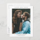 Enkelt vykort för foto Bröllop spara datum med minimal typografi och foto på framsidan. Baksidan har ytterligare information.