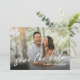 Skapa ett häpnadsväckande meddelande med det här bröllop-kortet för spara till datum med en modern fotokollage-mall. Markera bilder i förlovningen i ett flerfotostödraster för chic parat med ett enkelt kalligrafiskt skript och elegant typography stil. Den här minimalistiska klassiska designen erbjuder en klassmässig, förenklad och unik beröring samtidigt som man behåller en snyggt, en contemporary. Komplett med en QR-kod som länkar till webbplatsen bröllop, är det perfektens skönhets- och bekvämlighetsblandning för din stora dag!
