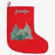 This red Christmas tree stocking with the name in a pale green matching the tree design colors is a simple stylish stocking that will be look wonderful with the Christmas decorations and be a pleasure to use year after year