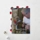 En roligt och festlig design med ett enda foto på framsidan och röda prickar på en vit bakgrund på baksidan. Fotot täcker hela kortets framsida. Vit typografi finns grund från kortet som visar ditt helgdag-meddelande. Ett modernt sätt att leta efter dina Julhälsningar kort. Du kan ändra teckensnittets färg genom att använda redigeringsalternativet på produktsidan.