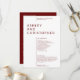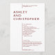 Ett enkelt minimalistiskt ceremoniprogram i bröllop har tagits bort från utomstående ornamentering och prioriterar funktionalitet, balans och harmoni. I utformningen framhävs parets namn som en brännpunkt i ett stort isolerat textblock och marginalen flyttas för övriga detaljer. Ren minimal typografi. Kortets baksida innehåller brudens sida och en enkel minnesinformation i vit text på färgadens bakgrund. Finns i ett markerat urval av rik modernt färg. Utformningen är lätt att anpassa och personligen. Var vänlig och ta reda på eventuella kommentarer eller hjälp för att tillgodose dina individuella behov. Alltid lycklig för hjälp! Obs! Lämna valfria textområden tomma om du vill ta bort eller använda designen verktyg för mer specifika, detaljerade anpassningar.