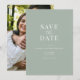 Create your own custom wedding save the dates. Add one of your favorite photos together alongside your wedding date and details in elegant sage green design with modern typography.
