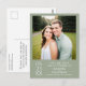 Det här vykortet för grönt är perfekten för att informera dina vänner och familj om ditt kommande bröllop. Med en enkel minimalistisk design med sin konst, moderna och elegant, inklusive ditt foto med vit text som innehåller all viktig information.