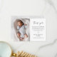 Simple Script Black and White Baby Photo Thank You Card. Click the edit button to easily customize this thank you template with your own details and photograph.