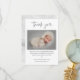 Simple Script Black and White Baby Photo Thank You Card. Click the edit button to easily customize this thank you template with your own details and photograph.