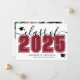 Ett klassiskt men modernt tillkännagivande från vågrät studenten. Framsidan har en överdimensionerad "klass av" i fet svart med "2025" i röd för att ge en vibrerande kontrast, accentuerad med elegant grått-skript. Två studentmössors ikoner tillför en känslofull beröring, med utrymme under för student namn och skolan. Färg kan anpassas för att matcha färg i skolan för en personlig. I baksidan visas ett fotokollage med tre bildpunkter och utrymme för ett hjärtligt meddelande från föräldrarna, där man betonar resultat och uttrycker pride.