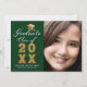 Meddela studenten i stil med det här fotoannonskortet för anpassningsbarna i elegant. Den här designen har ditt foto på högerna och till lämnat är en guld och vit typografi som innehåller ord "Student klass 20XX" med ditt namn och din skola för att anpassa skript i guld och vitt som accentueras av ett faux guld student-lock på gröntens bakgrund. Kortets baksida är en matchande grönt. Designad av Susan Coffey.