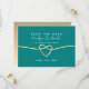 Enkelt, elegant, minimalistisk turkos teal Bröllop spara datum Inbjudan med ett enkelt handskrivet kalligrafi och guld rephjärta.