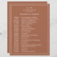 Enkel terracotta Bröllop-tidslinje med en modern utformning av eleganten med två brev-monogram överst och dina detaljer omgivna av ett tunt gräns. All text är vit över en bränd orange/rost bakgrund och kan ändras till valfritt färg genom att klicka på knappen "anpassa". En chic och snyggt som är underbar för ett minimalistiskt par.