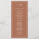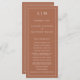 Modern Bröllopsprogram med en enkel men ändå elegant utformning med traditionell layout. Ditt två brev-monogram ligger överst tillsammans med dina detaljer omgivna av ett tunt gräns. All inslag är vit över en teracotta/bränd orange/rost bakgrund och kan ändras i designredigeringsverktyget i verktyg. En minimalistisk utformning med en klassisk känsla som är underbar för ett formellt bröllop.
