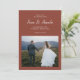 Den här enkla och chic två fototerracotta bröllop spara datum-annonseringen har en modern minimalistisk utformning med klassisk typografi och söt-bokstäver. Köp den här elegant bröllop-samlingen för att samordna bröllopsinbjudningar och ytterligare alternativ för trendig färg.