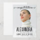 This modern, minimalist photo card features a full-page editable image and stylish white calligraphy script reading “congratulations". Customize with your own photo, name, and date in simple, modern typography for a personalized graduation announcement card celebrating an amazing achievement,