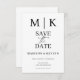 These elegant, modern wedding or bridal shower save the date feature a simple black and white text design that exudes minimalist style. Add your initials or monogram to make them completely your own.