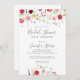 Denna enkla inbjudan till en tefest för vilda blommor är perfekt för en modern möhippa. Utformningen har ett flerfärgat sortiment av blommor i rosa, , lila, gult, vit, violett, röd, burgig vild.