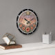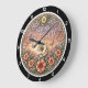 Invite a sense of peace and gratitude into your home with the Simply Blessed Sunset Garden clock. This elegant timepiece features a high-definition graphic centered on a large, cream-colored central bloom surrounded by a lush arrangement of peach and coral flowers. The artwork is set against a soft, painted sunset sky in shades of lavender and gold, further accented by delicate, fluttering butterflies. The inspiring text "SIMPLY BLESSED" is presented in a sophisticated serif font, encased within an intricate, light-toned scrollwork border. While the design masterfully mimics the dimensional depth of high-relief porcelain or hand-carved wood, this is a durable high-definition graphic application on a premium round clock face. It serves as a prestigious and calming addition to any bedroom, nursery, or vanity area.