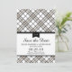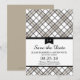 FRÅN SIMPLY PLAID-BRÖLLLOPSKOLLEKTIONEN: Modern svart och tan-rutig mönster Spara datum. Om färgschemat inte är vad du ville ha, vänligen meddela mig så återskapar jag det åt dig, men vänligen kontakta mig innan du lägger en beställning. E-post paula@labellarue.com Lycka till med bröllopsplaneringen! Se till att välja din favoritpapperssort för att få den tryckt på.