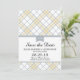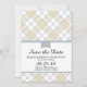 FRÅN SIMPLY PLAID-BRÖLLLOPSKOLLEKTIONEN: Modernt silvergrått och gult rutigt mönster Spara datumet. Om färgschemat inte är vad du ville ha, vänligen meddela mig så återskapar jag det åt dig, men vänligen kontakta mig innan du lägger en beställning. E-post paula@labellarue.com Lycka till med bröllopsplaneringen! Se till att välja din favoritpapperssort för att få den tryckt.