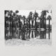 Svart och vit brandsläckare sitta bredvid ett sjö omgivet av handflatan träd.