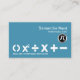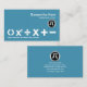 Ett mörk blått omslag förstärks av vita BODMAS-matematiska symboler vid kortets grund. BODMAS är en akronym för Bracket, Of, Division, Multiplication, Addition och Subtraaction, dvs. på grundval av en förstahandsmatur. Nedan visas kontaktuppgifterna. Överst ljuger du ditt prestigefyllda namn och jobbtiteln vid sidan av en faux silver "pi"-logotyp som du kan använda.