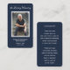 Ett enkelt marint blått och vitt minneskort innehåller "In Loving Memory" med ditt älskade foto, namn och data för födelsedöd och en dikt eller bön på baksidan. Snygg för en uppskattad keepé, begravningstjänster och firande för livets minnesmärke.