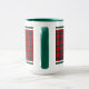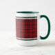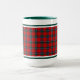 Kaffe mugg med tartan för Klan Sinclair och dess septer, inklusive Bower och Lyall. Grönten Scottish Lred and Forest plaid mönster från 1951, med mörk royal blue, black and white accents.