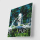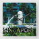 Svenirerna visar en ikonisk syn på Merlion i Singapore.