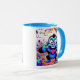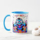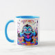 Un singe au pelage noir et bleu fluo fait une grimace amusante en tirant la langue et en pointant son propre sourire avec ses doigts. Ses grands yeux ronds et brillants ajoutent une touche comique à son expression exagérée. Tout autour de lui, d'autres petits singes et animaux rigolos évoluent dans un décor fantastique, rempli de couleurs vives et fluorescentes. Le paysage étrange et animé semble tout droit sorti d’un univers imaginaire, avec des plantes aux teintes éclatantes et des détails surprenants qui donnent un effet hypnotique à l’ensemble. Ce visuel plein d’énergie et d’originalité attire immédiatement l’œil avec son style exubérant et son atmosphère de fête.