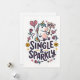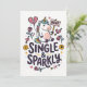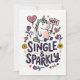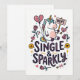 En lättsam välkomstkort med en beslutsam enhörning som håller upp en "nej"-skylt, omgiven av lekfulla hjärtan, pilar och rosor. Frasen Single & Sparkly tillför en självsäker, humoristisk ton som firar oberoende med en touch av nyckfullhet.