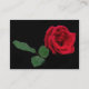 Detta eleganta konstnärhandelkort presenterar en scharlakansröd röd ros för utsökt singel med tre gröna löv mot en svart bakgrund.