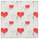 Singing Heart Mönster. Röda hörn, Grått Notes Tyg