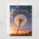Single dandelion head with its seeds gently catching the wind and drifting away. Wonderful, custom sympathy / condolence card! Aurora lights, blue and warm colors.