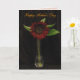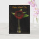 Det här Mors dag-kortet i elegant har en underbar röd solrosa i ett enkelt vas, med några grönt löv på en ren svart sammetsbakgrund. Insidan är ytterligare en blomma på en rosa av blek. All text kan anpassas för ditt speciella tillfälle.