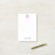 Den här klibbiga anteckningsblocket har en fet digital målning av en enda Lavatera-blomma överst på sidan och en lila personlig namn vid grund kant i ett skript teckensnitt.