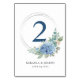 Styr dina gäster i stil med det här SINI Blue Hydrangea Bordsnummer Card. Med vattenfärgsbrandanglar av elegant i mjuka blått nyanser tillför det här vackert designade kortet en skarp blommigt till bröllop eller speciella händelse. Perfekt för att skapa en sammanhängande och sofistikerad inställning för bord.