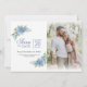 Lägg märke till din stora dag i stil med vårt SINI Blue Hydrangea Spara datumet med fotokort. Med vattenfärgsbrandangårdar för elegant och plats för ditt favoritfoto är den här perfekten till att glädjen och markera din kalender med kärlek
