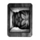 Svartvit illustration av ett olycksbådande tittar tabby katt. Original tecknad art av Taylor Addams.