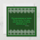 I skuggor av grönt, med en evighetssymbol mönster utformat gräns. Lätt att anpassa, inklusive Irish Bluting på baksidan.