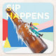 A bold and playful “Sip Happens” coaster featuring a frosty beer bottle and a retro-style character sliding down in a burst of fun. Perfect for adding personality to any bar or entertaining space.