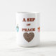 TAKE A MOMENT WITH MY "SIP OF PEACE" BREAK TIME WRAP-AROUND MUG. A GENTLE EMINDER TO REST YOUR MIND BREATHE, RELAX AND SHUT THE WORLD OUT EVEV IF IT'S BETWEEN SIPS. A PEACE OF MIND IS PRICELESS. CRAFTED WHITE HIGH-QUALITY CERAMIC. DISHWAHER AND MICROWAVE SAFE. COMES IN 2 SIZES 11 OZ AND 15 OZ.