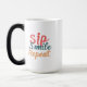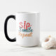 Börja din dag med ett leende! Den här 15 oz morfing mugg ger en magisk fingervisning till rutinen när den omvandlas med värme, vilket avslöjar den lekande designen "Sip, Smile, Repeat". Det är perfektens följeslagare till kaffe älskare som uppskattar lite morgonmagi. Njut av varje sipp, se på förändringen i färg och låt mugg göra din dag ljusare.
