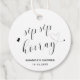 Tryckeribröllopsgavor Tags med texten "Sip Sip Hooray" i svart kalligrafi med ett hjärta på sidan och prickar på "i:et" samt ditt namn, evenemang och datum nedanför, mot en vit bakgrund. Baksidan är enfärgat svart. Bakgrundsfärgen kan ändras till valfri färg. Den enkla och minimalistiska layouten och det stora tomma utrymmet ger designen en modern känsla och den kalligrafiska texten och hjärtana ger den en romantisk twist. Dessa eleganta och snygga märken lägger till en personlig touch till dina gavor.