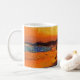 Den här mugg fångar dagens sista ljus, men om du användor den för morgonkaffet kan du låtsas att det är dagens första ljus. Bilden började som ett originalfoto taget i Carpinteria, CA, en liten stad norr om Los Angeles. Jag har tillämpat digitala effekter för att förbättra färg och struktur. Jag känner lycklig varje gång jag tänkor om Carpinteria - en stad som slutar på en strand. Förhoppningsvis kommer den här bilden att påminna dig om din favoritstrand vid solnedgången eller soluppgången.