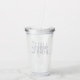 Tumlare av ren plaståteranvändbar halm kopp, personlig för en kommande bröllop- eller jubileumsgåva med "Mrs" i ett stort modernt och trendig typsnitt med anpassningsbar efternamn i ett elegant som namnteckning typsnitt för kalligrafi, med en diamantaccent för roligt bling. Med en anpassningsbar tryckt på bröllop-datum på baksidan är det en perfekt möhippa-gåva eller en del av en samordnande uppsättning av nyckelpersoner i brudens sida kopp.