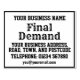 Sista påminning gummistämpel med namn, adress, etc. Lägg till ditt företagsnamn, adress, telefonnummer och e-post.