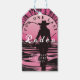 Sista Rodeon Senteressa, denna design har en cowgirl i en retro rosa och svart solnedgångslook. Perfekt för alla möhippor.
