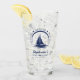 Nautisk blå och vit möhippa/bachelorette-partiglas med segelbåt och frasen "sista segeln före slöjan". Anpassa den med din händelseinformation.