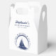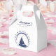 Nautisk blå och vit möhippa/bachelorettfest med segelbåt och frasen "sista segeln före slöjan". Anpassa den med din händelseinformation.