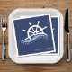 Nautisk blå och vit möhippa/bachelorettfest napkin med frakt helm och frasen "sista segeln före slöjan". Anpassa den med din händelseinformation.